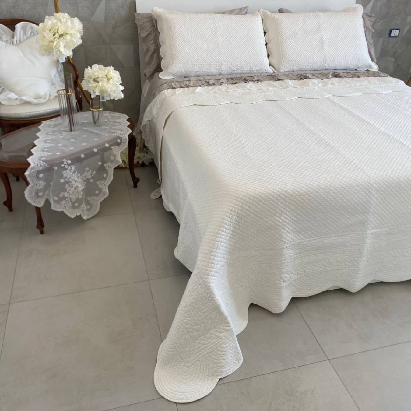 Boutis matrimoniale Carmen con 2 copriguanciali bianco Blanc Mariclò