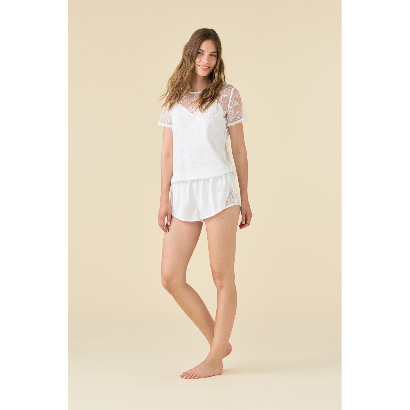-Top bretellina e maglia manica corta in pizzo