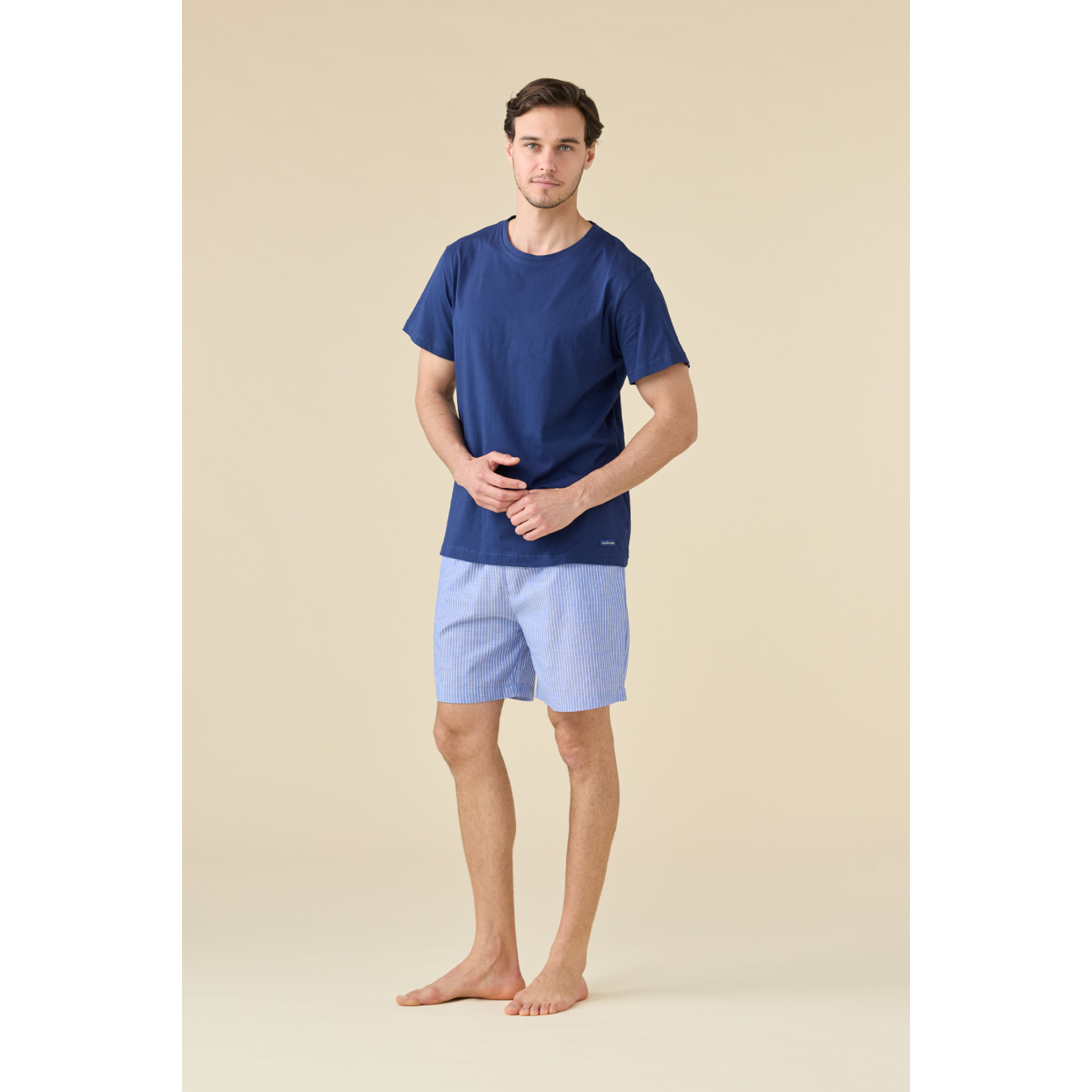 -Modello : maglia girocollo e panatalone corto con coulisse in vita e tasche in navetta di cotone